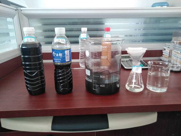 下圖便是農藥污水處理前后對比圖,依次從左到右,是從污水到凈水的過程。